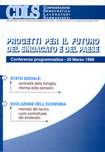 conferenza programmatica organizzata per il 30 marzo 98 sul tema “Ruolo del Sindacato nella società e nell’economia che cambia”. Centralità della famiglia, maggiore attenzione ai giovani, anziani “una risorsa da salvaguardare e valorizzare, bisogno di profonde innovazioni nel sistema pensionistico, difesa del ruolo contrattuale del sindacato